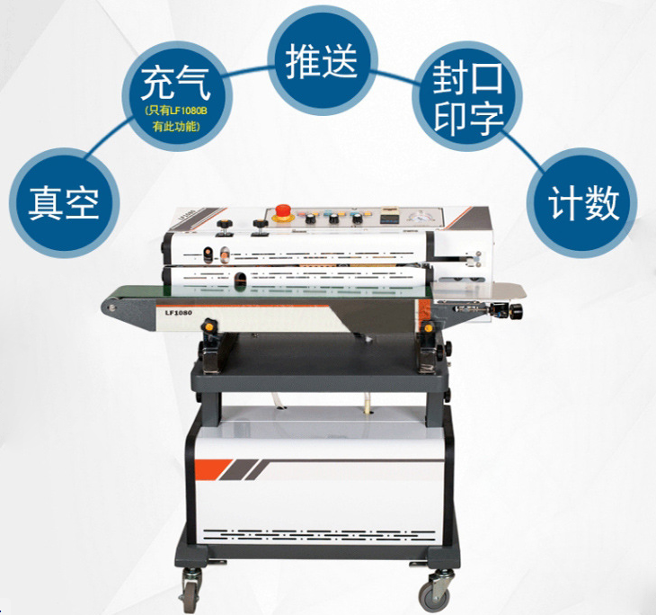 LF1080出口型连续式真空抽气充气包装充氮气食品口罩封口机